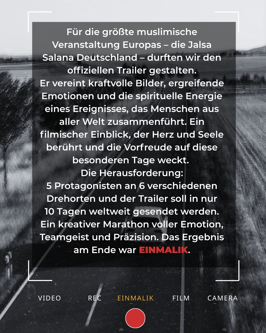 Für die größte muslimische Veranstaltung Europas – die Jalsa Salana Deutschland – durften wir den offiziellen Trailer gestalten.